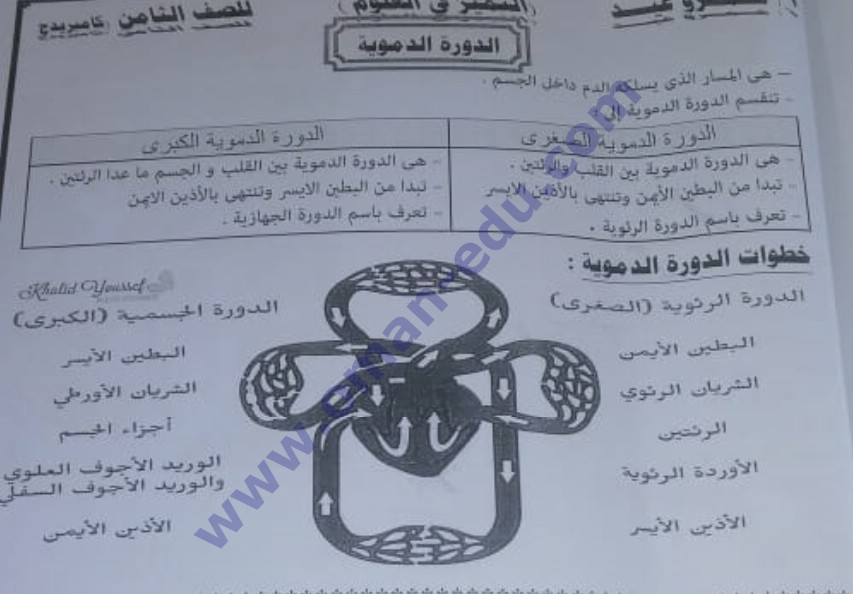 جدول المقارنة بين الدورة الدموية الكبري و الصغرى